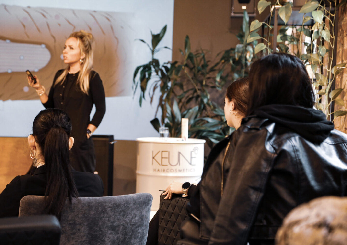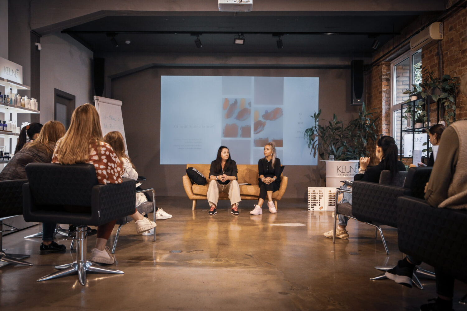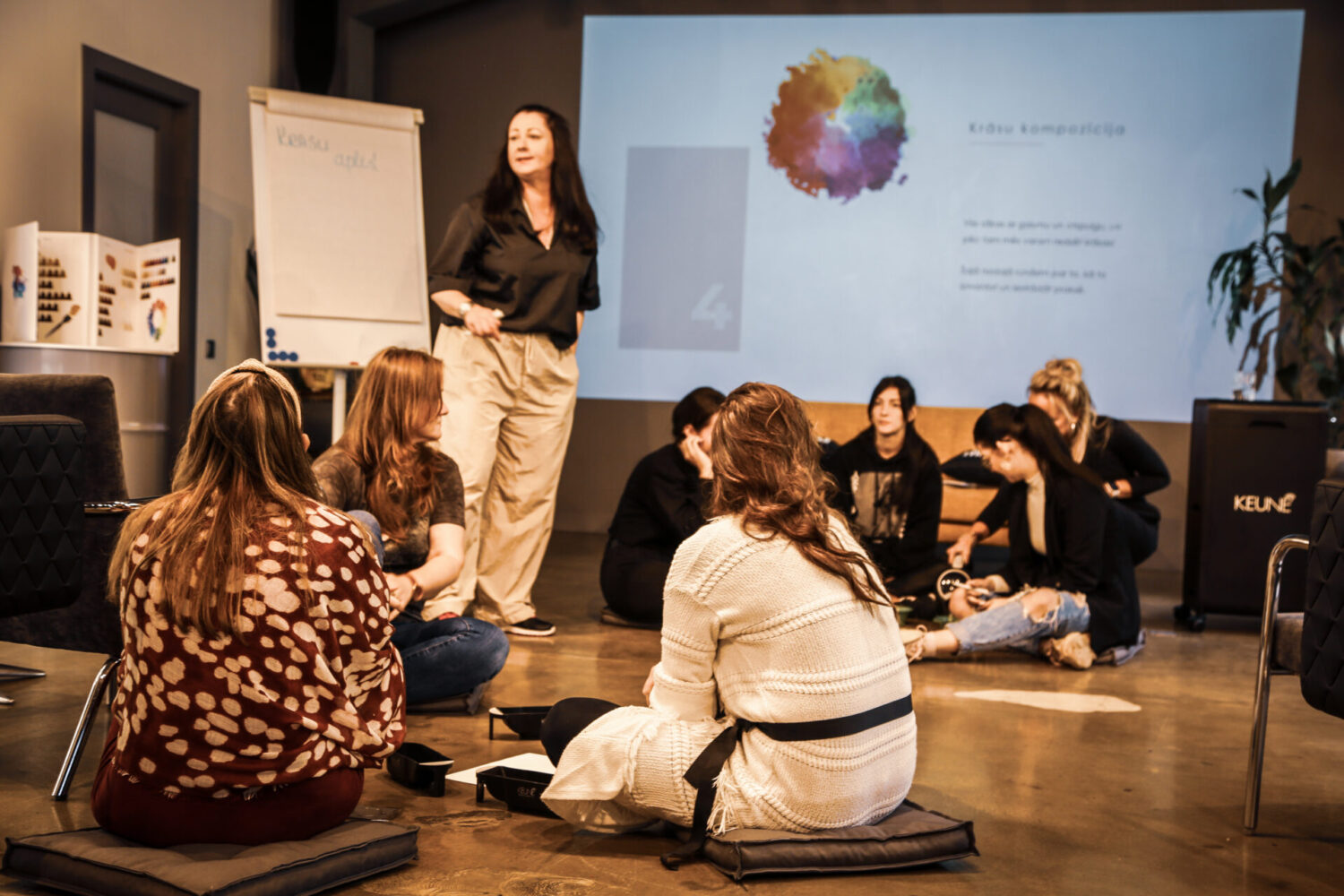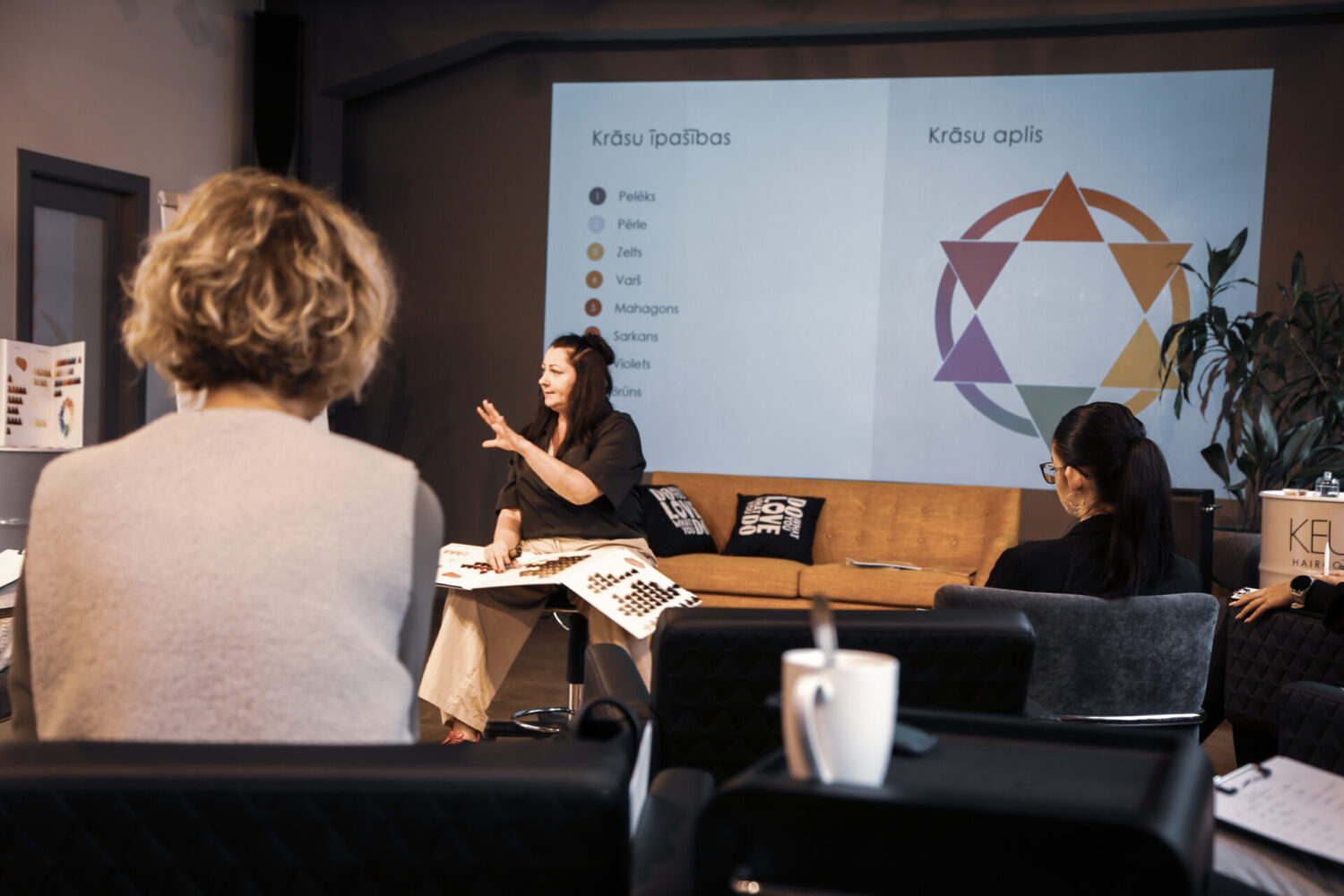 Samal ajal, kui õues sajab sügisvihma, tervitavad Keune koolitajad Ilze Voldraha ja Jolanta Krastiņa osalejaid kuuma kohviga. Stuudiosse tulid nii uued kui ka kogenud stilistid, kes katkestasid oma igapäevarutiini, et uurida juuste struktuuri, värvi, keemilisi protsesse ja leida uut inspiratsiooni.