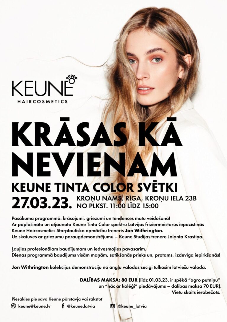 Keune Tinta värvi tähistamine 27.03.23! Crown House, Riia, 23B Crown Street kell 11:00-15:00. ✨ Päevakorras: värvid, lõikused ja juuksetrendid! Laiendatud ja uuendatud Keune Tinta Color sarja tutvustab Läti juuksuritele Keune Haircosmetics Internationali…